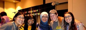 A member of the MSAV read off of his iPhone an Islamic prayer both in Malay and English, and then we were dismissed to delight our taste buds. My, oh my, was there a delectable array of food! We filled our bellies with rotijala (net bread) which we paired with spicy curry; nasi kerabu (yellow rice) which we combined with sambal (chili paste), veggies, and steam dried fish; flavorful fried chicken; a kari pop (curry puff); and buah melaka, which was a coconut-covered, green dessert which reminded me of a Gusher, because it was filled with liquid sugar. My goodness, it was sweet!