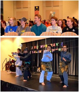 The program of the night began as we wide-eyed Americans watched four Malaysian men bow to the audience and begin to dance-fight each other, reminding me of the capoeira that I learned about in a Music in Global Culture class. Our confusion dissolved after our knowledgeable MCs explained that we had just witnessed choreographed martial arts called silat.