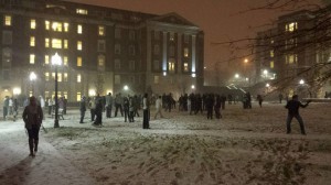Oh well. Still excited. I hopped out of bed, chucked some studying stuff into my backpack, pulled on my wool socks and boots, and giddily skated across the black ice all the way to Rand. All day, the hot conversation starters were, “Yes! I was totally awake at 1:30,” “Screaming people woke me up at 1 AM,” “Snow is definitely the best study break,” and “We should totally go sledding on Love Hill.”